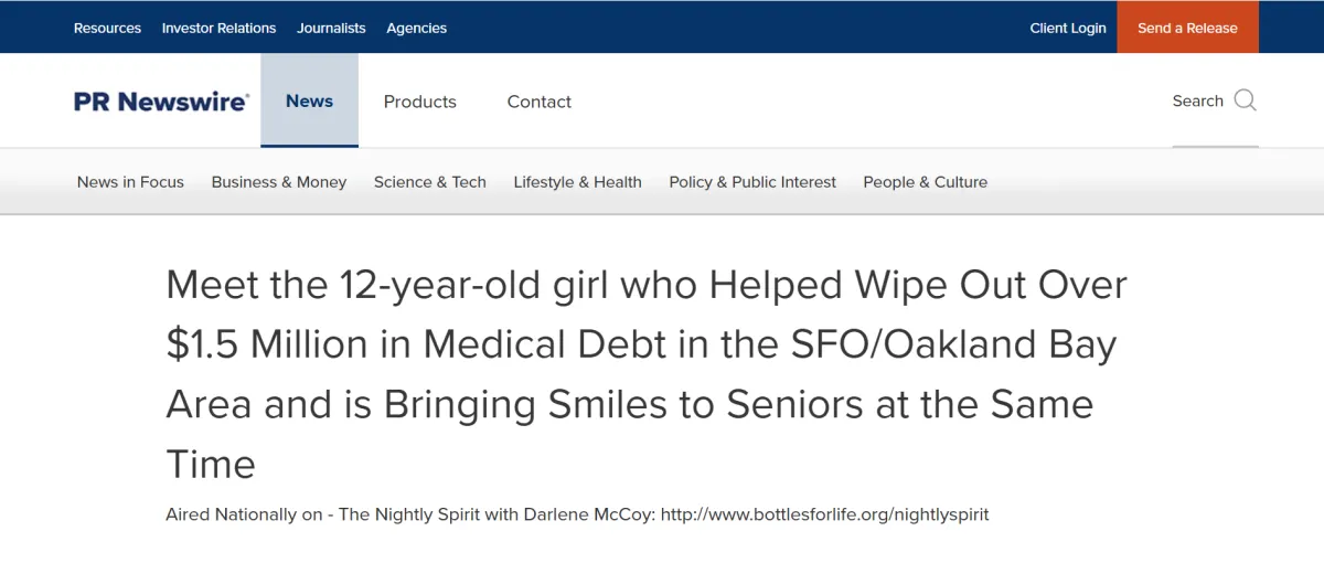 Meet the 12-year-old girl who helped wipe out over $1.5 million in medical debt in the SFO/Oakland Bay Area and is bringing smiles to seniors at the same time!